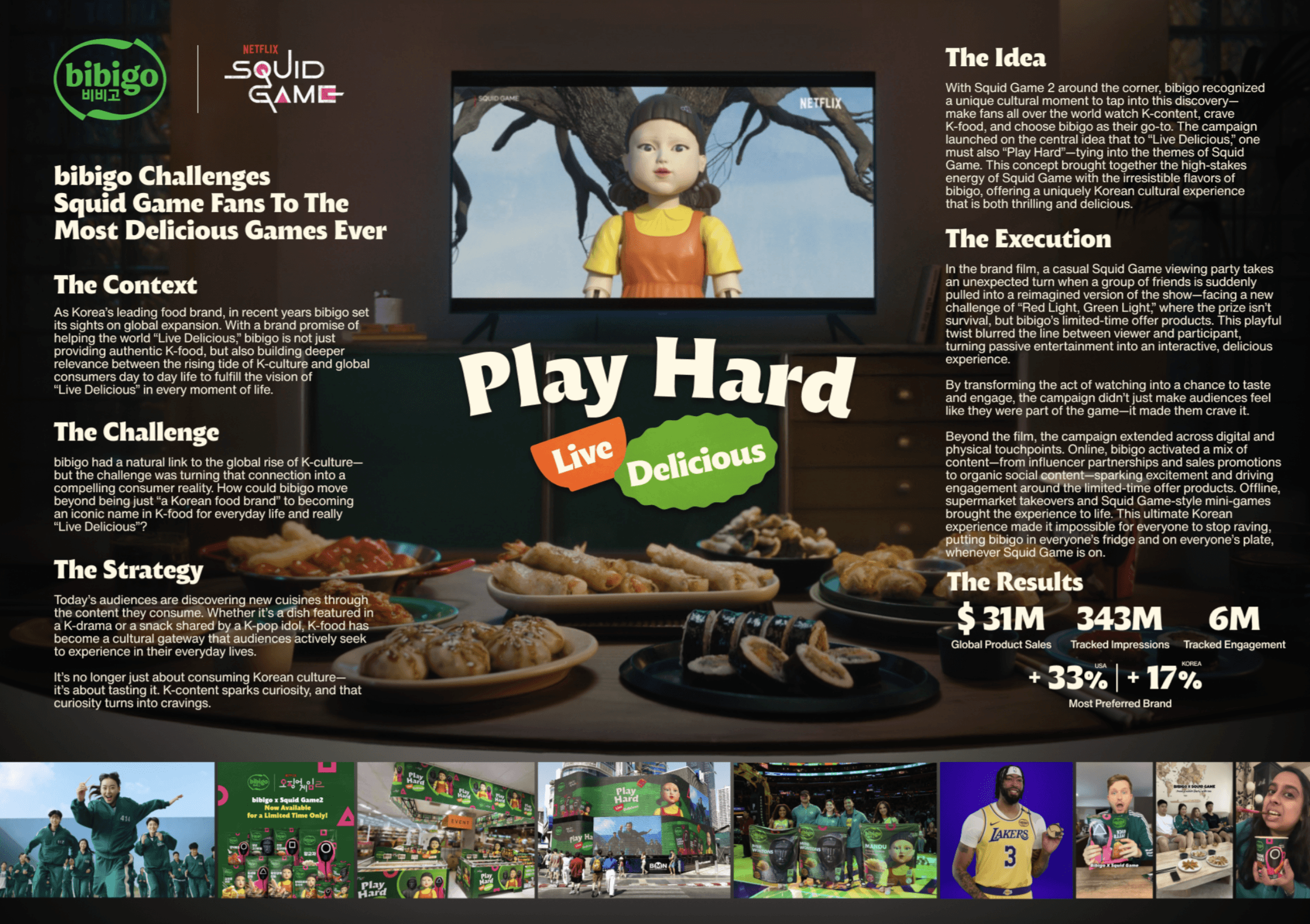 Bibigo wanted to evolve from a Korean food brand into an icon of K-culture and found the perfect stage in its global collaboration with Squid Game Season 2. We brought the idea Play Hard, Live Delicious to life by blending the show’s thrilling intensity with Bibigo’s irresistible flavors, creating a campaign that was bold, playful and unmistakably Korean.